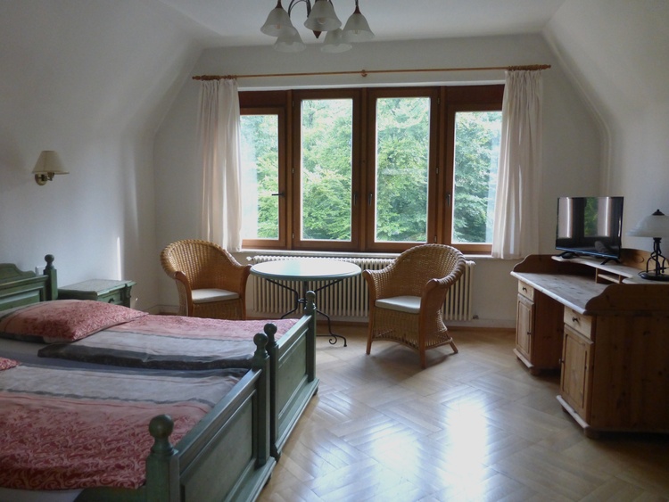 Das 60qm große Apartment befindet sich auf separater Etage mit 2 Doppelzimmern, gr. Bad mit Badewanne, Du, WC und einem WC extra.