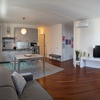 Open-plan living room with kitchen and sofa bed