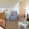Die Ferienwohnung im Obergeschoss verfügt über einen separaten Hauseingang. Sie ist ca. 55 qm groß und für 3-4 Personen geeignet. Sie besteht aus einem Schlaf-, einem Wohnzimmer, einer Küche und einem Bad. Die gesamte Wohnung wurde in den letzten Jahren schrittweise komplett renoviert, sie ist mit hellen und gemütlichen Möbeln ausgestattet. Ein hochwertiges Schlafsofa im Wohnzimmer bietet zusätzlich zum Schlafzimmer eine Übernachtungsmöglichkeit für bis zu 2 Personen. Vom Essplatz im Wohnzimmer haben Sie einen traumhaften Ausblick aufs Wasser. Die Küche ist mit Geschirrspüler, Ceran-Kochfeld, Mikrowelle und allen für eine Selbstverpflegung nützlichen Küchenutensilien ausgestattet. Hier befindet sich ein zusätzlicher kleiner Essplatz für 2 Personen. Das Tageslicht - Duschbad ist grundlegend renoviert. Zur Wohnung gehört eine eigene Sitzecke mit Gartenmöbeln im Freien. Der Garten mit Liegewiese und Strandkörben wird von den Mietern beider Wohnungen gemeinsam genutzt.