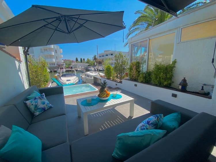 Hübsches Haus, Füße im Wasser, komplett renoviert im Jahr 2019, in einer ruhigen Wohngegend gelegen. Terrasse mit privatem Whirlpool direkt an der Marina. Privater Parkplatz. WLAN, Klimaanlage.