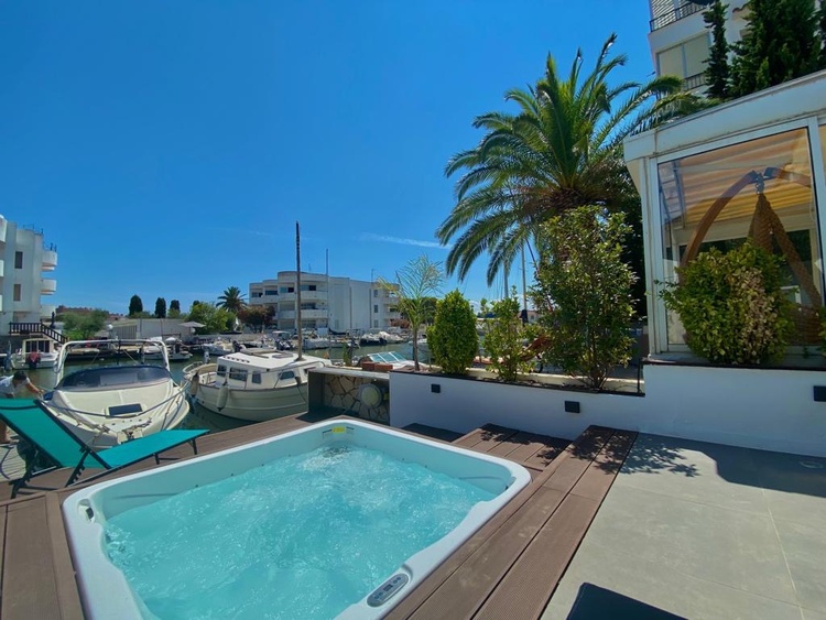 Hübsches Haus, Füße im Wasser, komplett renoviert im Jahr 2019, in einer ruhigen Wohngegend gelegen. Terrasse mit privatem Whirlpool direkt an der Marina. Privater Parkplatz. In der Nähe des Strandes von Santa Margarita sowie von Geschäften und Restaurants.