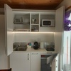 La seconda stanza sempre con un balcone e con un secondo bagno (doccia, lavabo, bidet, e wc), troverai: una cucinetta equipaggiata con 2 piastre a induzione, microonde, frigo, lavandino, un bollitore, una macchina del cafè e naturalmente il necessario per cucinare.