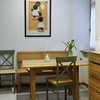 Im Eingangsbereich ist ein Garderobe, ein Wand - und ein Schuhschrank. Im Wandschrank ist ein Bügeleisen und die Möglichkeit Ihre Koffer zu deponieren. Eine gemütliche Essecke mit Tisch, Bank, Stühlen und ein Fenster mit Blick in den Gartenbereich.