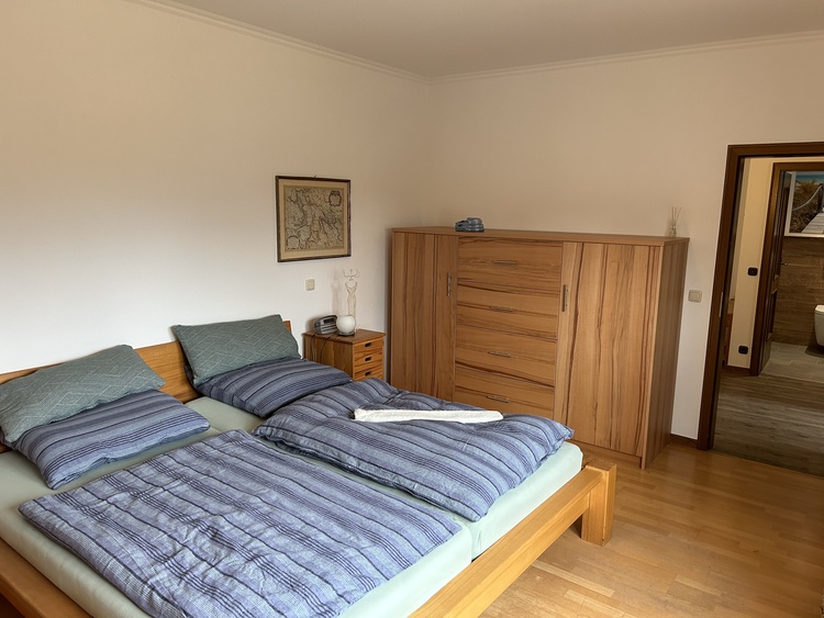 Hier findest du ein Schlafzimmer mit Doppelbett und reichlich Staumöglichkeiten, sowie ein weiteres Schlafzimmer mit zwei Einzelbetten. Sie verfügt über ein Gäste WC, sowie ein Duschbad. Über den Flur mit Gaderobe gelangst du in die Küche, mit Geschirrspüler, Mikrowelle, Herd und Backofen, sowie Kühlschrank. Ebenso gelangst du durch den Flur in das Wohn- Esszimmer