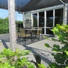 Terrasse: Gartentisch mit 4 Terrassenstühlen, Picknicktisch, im Sommer optional mit Sonnensegel.