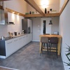 Küche: Voll ausgestattete Küche mit Geschirr, Backofen, großem Kühl-/Gefrierschrank, Geschirrspüler, 4-Platten-Elektroherd, Philips Senseo Kaffeemaschine, Wasserkocher, Mikrowelle und Bartisch mit vier Barhockern.