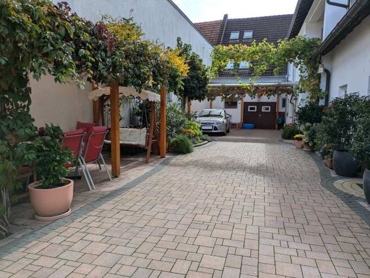 Besonderheiten Fewo 1: Die Ferienwohnung liegt im Erdgeschoss. In einer kleinen gemütlichen Laube im Hof kann man die Pfälzer Sonne genießen.