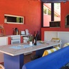 The adjoining conservatory with a small dining area leads to the separate, colourful and fully equipped kitchen and BBQ.