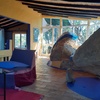 Im oberen Teil befinden sich ein eher kindgerechtes "Felsenbett", und auch ein ausziehbares Sofa-Bett, ein Tisch und ein offener Kamin.