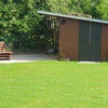 Sandkiste für die Lütten, Gartendusche, Rasenfläche und Rauslaufsicher.