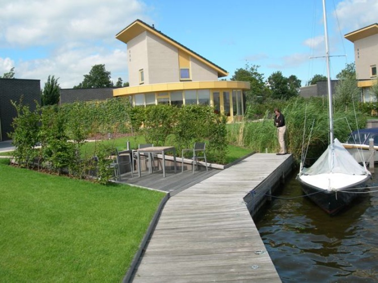 Das Haus hat ein geräumiges Wohnzimmer mit einer offenen Küche mit Kochinsel (hervorragender Aussicht über das Wasser). Eintritt mit Toilette und Tür zur Garage. Sie können die Garage benutzen obschon es da viele Sachen gibt vom Hausbesitzer. In der Garage befindet sich einen zusätzlichen Kühlschrank und eine Waschmaschine. Auf dem Erdgescho? gibt es ein großes Schlafzimmer mit einem Doppelbett (Boxspring) und ein eigenes offenes Badezimmer. Auf dem Obergescho? befinden sich zwei Schlafzimmer mit 2 Einzelbetten (Boxspring). Auch gibt es ein zweites Badezimmer/Toilette hier. Hinter dem Haus gibt es einen schönen Garten + Terrasse gleich am Wasser (Sie können hier, mit den Kindern, fischen im eigenen Garten). Es gibt eine Landungsbrücke von wo Sie Ihre Boot festmachen können. Sie können Ihr eigenes Boot mitbringen oder ein Boot mieten um Friesland ab dem Wasser entdecken zu können. Online buchen am ferienfriesland.de