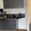 Top-Küche: 2 Kaffeemaschinen, Mikrowelle, Toaster, Herd & komplettes Kochgeschirr.
