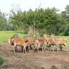 Katzen, Kaninchen und Ponys zum Reiten, Kinderspielplatz, Grillplatz, Spielhalle verschiedene Fahrzeuge z. B. Fahrräder, ein Tischkicker, Dartspiele Riesentrampolin und Tischtennis.