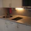 Elektroherd, Kühlschrank, Tiefkühlfach, Mikrowelle, Geschirreinrichtung, Wasserkocher, Kaffeemaschine, Toaster, Eierkocher, Besteck, Gläser