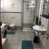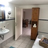 Von der Küche oder auch vom Flur aus gelangt man in das großzügige Badezimmer. Auf der einen Seite ist eine Badewanne für kalte Tage und ein WC. Eine Erweiterung dessen ist die Dusche und das Waschbecken. WC-Papier (Erstausstattung), Hand- und Badetücher sind vorhanden.