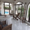 Rund um den 8m x 4m grossen Pool mit römischer Treppe ist die freie Terrasse, ein Grillplatz und eine Aussendusche. Vor der Küche ist zusätzlich ein gemauerter Sitzplatz. Innerhalb des geschlossenen Grundstücks befindet sich ein Parkplatz und ein Carport.