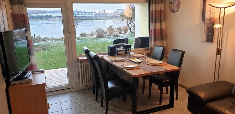 Die Ferienwohnung (44 qm) befindet sich Paterre und ist in ein Wohn- und Esszimmer mit einem abgeteilten Schlafraum, ein separates Kinderzimmer, eine Küchenzeile, ein Duschbad (barrierefrei) und einem Flur aufgeteilt. Ein PKW-Stellplatz ist direkt am Haus vorhanden und gehört zu der Wohnung. Kostenloses WLAN.