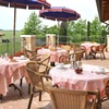 Das Frühstück wird von April bis September im Salon im Obergeschoss, während der warmen Tage auf dem grossem Balkon vor einer schönen Landschaft, serviert.