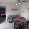 Schlafzimmer und Wohnzimmer mit Kueche am Erdgeschoß barrierefrei (ca. 55 qm). Sie besteht aus einem Schlafzimmer mit Doppel und etagenbett , einer Wohnküche mit Sofàbett, Tisch und Stuhle,Tv, einem Badezimmer mit Dusche . Sie ist geeignet für 5/6 Personen.