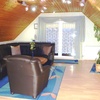 Wohnzimmer mit Sitzgruppe und Sessel sowie freundlicher Essecke.