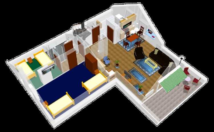 (1,20 m x 2,00 m), sowie Bett (0,90 m x 2,00 m).