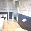 1 Badezimmer mit Dusche, WC und Waschmaschine.