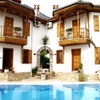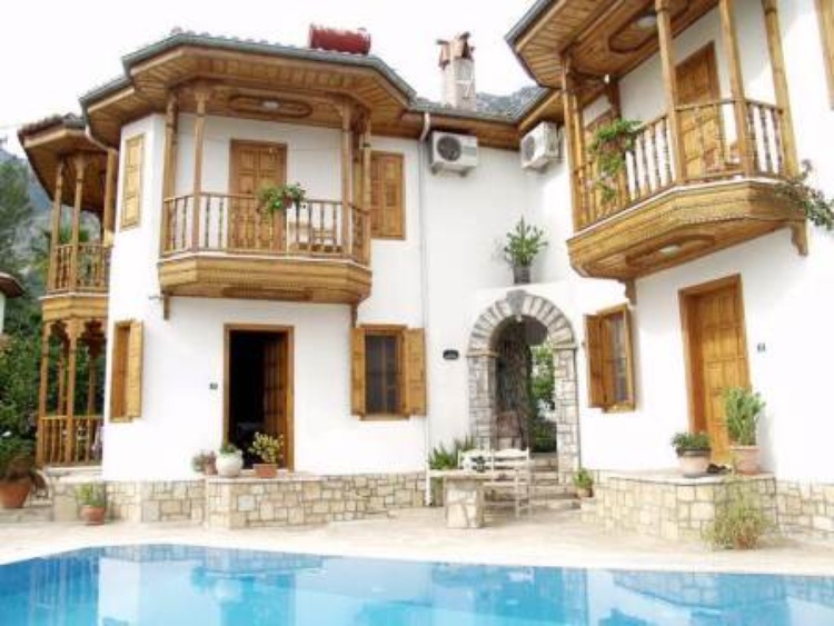 Unser Haus steht in der außergewöhnlich schönen Landschaft von Gökova in dem Ferienort Akyaka am Fuße der Vorläufer des Taurusgebirges und am Ende der imposanten Golf von Gökova in ruhiger und sonniger Lage. In dem kleinen und lieblichen Ferienort sind die Entfernungen auch dementsprechend gering. Das Haus mit teilweise Blick auf die Berge steht auf einem Gartengrundstück mit weiteren 4 Häusern gleicher Art zusammen. Es ist ein Beispiel der bemerkenwerten Architektur dieser Gegend. Es ist eine Art Fachwerkhaus, wobei viel Holz verwendet wird. Insbesondere die Decken stellen anspruchsvolle handwerkliche Kunstfertigkeiten dar. Das Haus ist geschmacksvoll und z. Teil örtlicher Art und Weise gemütlich eingerichtet und mit Klimaanlage ausgestattet. Den Gemeinschaftspool, der mit Liegen und Schirmen ausgestattet ist, teilt es mit den anderen 4 Häusern.