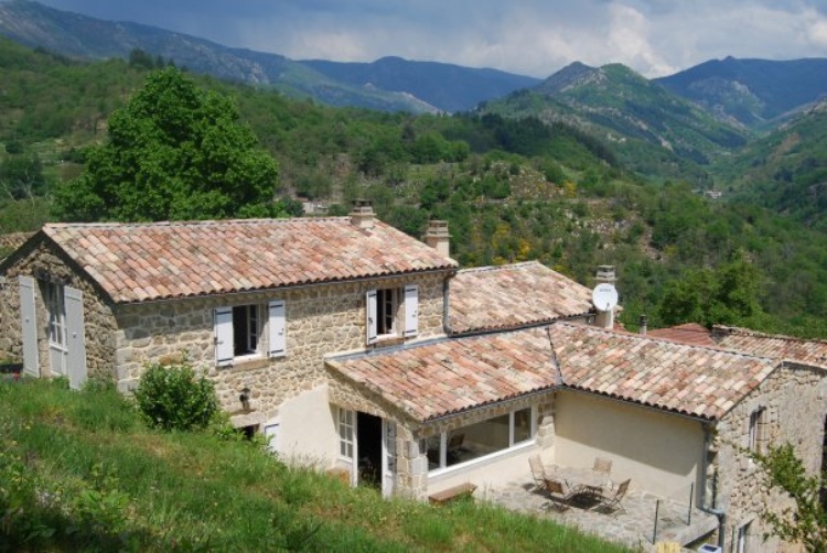 La grande maison du Fau liegt auf einem Hügel, in einem kleinen Weiler, der heute noch bewohnt wird. Von hier hat man einen schönen Panoramablick über die Berge der Ardèche.