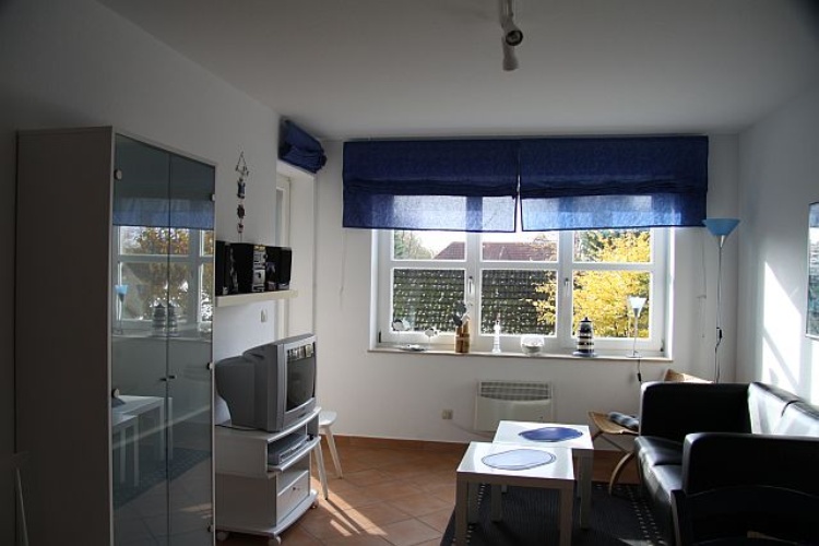 Es verfügt über ein Wohnzimmer mit Küchenzeile, ein Schlafzimmer ausgestattet mit einem Doppelbett und ein Kinderzimmer mit insgesamt vier Schlafmöglichkeiten, ein Badezimmer mit Dusche, einen Balkon in Westlage und einen Kfz-Stellplatz.