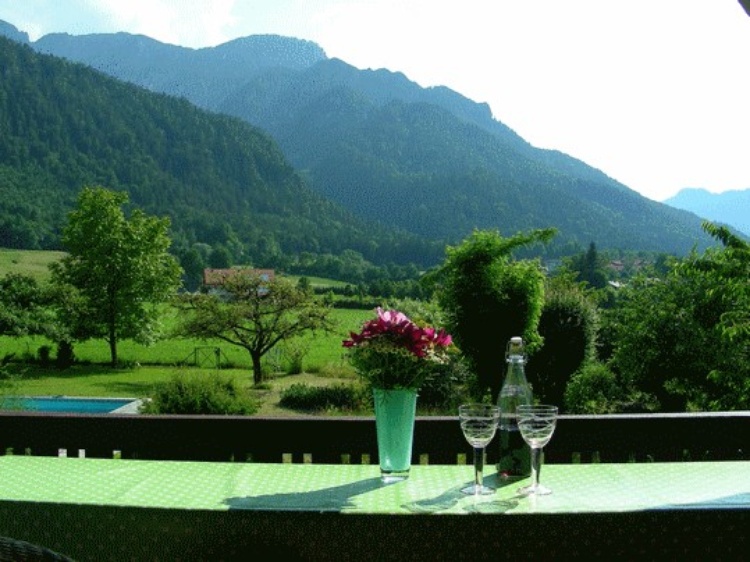 Sehr ruhige Nebenstrasse, Südbalkon, mit unverbautem Blick auf das Lattengebirge und die „Schlafende Hexe“. 80 qm für 2-3(max 4)Personen. Davon 2 Personen im großen Schlafraum,1- 2 im abgeteilten Bereich auf „guten“ Betten in der Wohnzone. Extra Koch – und Essbereich. Ausgestattet mit großem TV, Hifi mit CD, Herd, Backofen, Mikro, Kühlschrank. Alles neuwertig und niveauvoll.