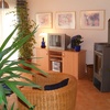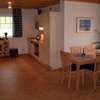 Im EG ist der große Wohn-/Essbereich mit Zugang zur süd-westlich ausgerichteten Terrasse. Der Wohnbereich ist mit Kamin, einem Schlafsofa, 3 Sesseln + 1 Tisch, 1 TV + DVD-Player und Stereoanlage ausgestattet. Der Essplatz ist hell und schließt an die offene Küchenzeile mit Kühlschrank, Spüle, Geschirrspüler, Herd mit Backofen, Mikrowelle etc. an. Zusätzlich gibt es ein WC.