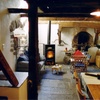 Die Räume: Wohn-Essraum (Esstisch mit 6 Stühlen) mit offener Küche, Kaminplatz (Sitzgruppe) mit Kaminofen,