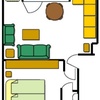Die 45 qm große praktisch und geschmackvoll eingerichtete Wohnung besteht aus 2 Zimmern und Bad.