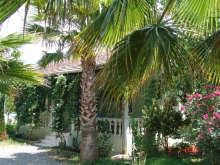 Das Haus liegt in einem gepflegten Palmengarten mit großem Pool.