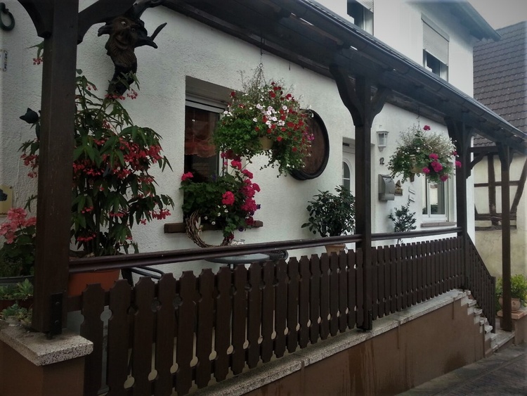 Terasse vor der Wohnung mit Sitzgelegenheit, sowie kleiner Blumenhof mit Sitzgelegenheit, sowie die Mitbenutzung unseres kleinen Blumengattens mit Grill.