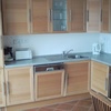 Elektroherd, Kühlschrank, Tiefkühlfach, Geschirrspüler, Geschirreinrichtung, Wasserkocher, Kaffeemaschine, Toaster, Besteck, Gläser