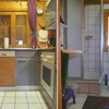 Anbau mit Einbauschrank (Elektrogrill, portable Mikrowelle und Stauraum), 5 Terrassenstühlen mit Sitzkissen, 2 Sonnenliegen, Sonnenschirm, 2 Wäscheständer, Rodelschlitten, Wäschekorb und -klammern, Untergestell für E-Grill.
