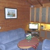 1 Wohnraum mit bequemer Sitzgruppe, Schrankwand mit großzügiger Unterbringung von Geschirr und Gläsern, SAT-Farb-TV, Stereoanlage mit CD-Player, Videorecorder / DVD-Player, Essecke (Tisch 1,0 m x 1,8 m) und schnurlosem Telefon für Notrufe und Rufannahme.