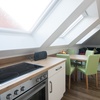 Elektroherd, Kühlschrank, Tiefkühlfach, Geschirrspüler, Mikrowelle, Geschirreinrichtung, Wasserkocher, Kaffeemaschine, Toaster, Besteck, Gläser