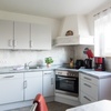 Elektroherd, Kühlschrank, Tiefkühlfach, Geschirrspüler, Mikrowelle, Geschirreinrichtung, Wasserkocher, Kaffeemaschine, Toaster, Besteck, Gläser