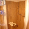 Die Ferienwohnung ist mit Fliesen und Laminat, durch ebene und absatzlose Gestaltung, durch Türen mit einer Breite von 1,02 m und Halt- und Sitzhilfen in Bad und Toilette sowie einem Abstellplatz für einen Rollstuhl auch barrierefrei ausgebaut.