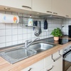 Elektroherd, Kühlschrank, Tiefkühlfach, Mikrowelle, Geschirreinrichtung, Wasserkocher, Kaffeemaschine, Toaster, Besteck, Gläser