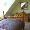 The bright, south-facing MAIN BEDROOM has attractive views over mature gardens through the bay windows. It has a double bed , bedside tables, wardrobe, drawers , all in quality pine, with bedside lamps and a clock radio alarm. A temporary folding bed available in the lounge in for a third member of the same family for short stays