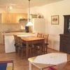 Komplett eingerichtete Küche, Wohnzimmer und Duschbad.