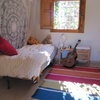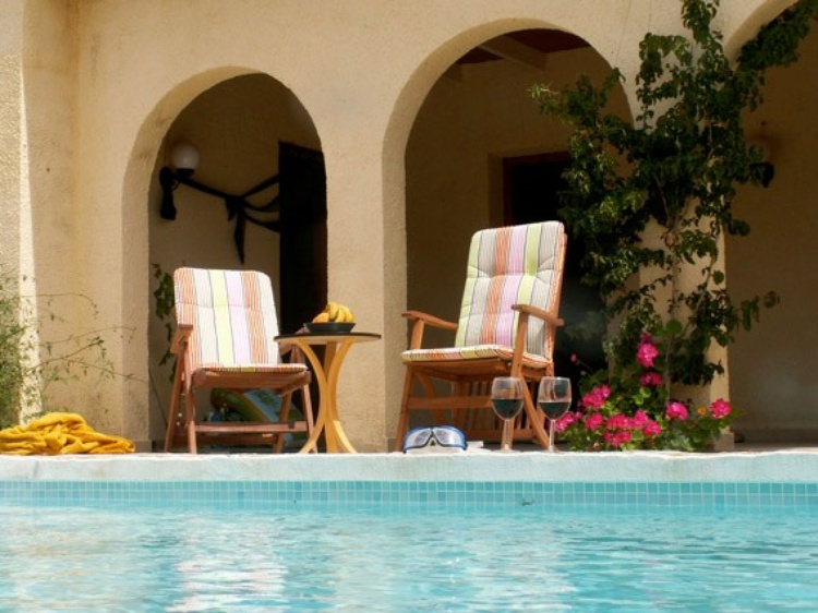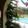 Das Haus befindet sich, eingebettet in einen Hang, auf 2350 m2 terassiertem Land mit Mandelbäumen, kleinen Oliven-, Feigen- und Orangenbäumchen. Der Zugang zum Haus erfolgt ausschliesslich durch eine Privatstrasse – das ganze Areal vermittelt so eine Atmosphäre von Intimität. Die nutzbare Wohnfläche beträgt ca. 80 m2 (inkl. Patio) und ist für eine Familie mit 1 bis 2 Kindern ausreichend. Bei mehr als 4 Personen müsste das Bettsofa im Wohnzimmer als Schlafgelegenheit genutzt werden.Im Frühling überzieht sich das Land mit wilden Blumen in allen Farben. Feigen- und Orangenbäumchen brauchen wohl noch ein Jahr bis sie genügend Früchte tragen, aber die Küchenkräuter stehen allen Gästen zur Verfügung.