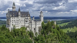 Auf einem Berg hoch über Schwangau im Allgäu steht das Schloss Neuschwanstein. Der Sitz beeindruckt durch eine Fassade aus Kalkstein und seinen Türmen. Aus den imposanten Fenstern des Schlosses erhaschen Sie eine beeindruckende Sicht über die Berge und Wälder des Gebiets.